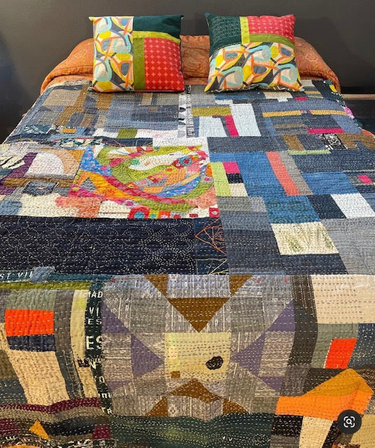 As an Art form, quilt making is a visual poem; a conversation between creator and viewer, a necessary dialogue between heritage and our personal experiences with textiles, in a modern world where excess is flaunted and often celebrated. Talking about textile waste invigorates Maday to create solutions. Textiles are expressive, comforting and connecting. The stories they carry are a part of us and a powerful reminder that a sustainable future is crucial for the longevity of our creative practices and relationship to the natural world.