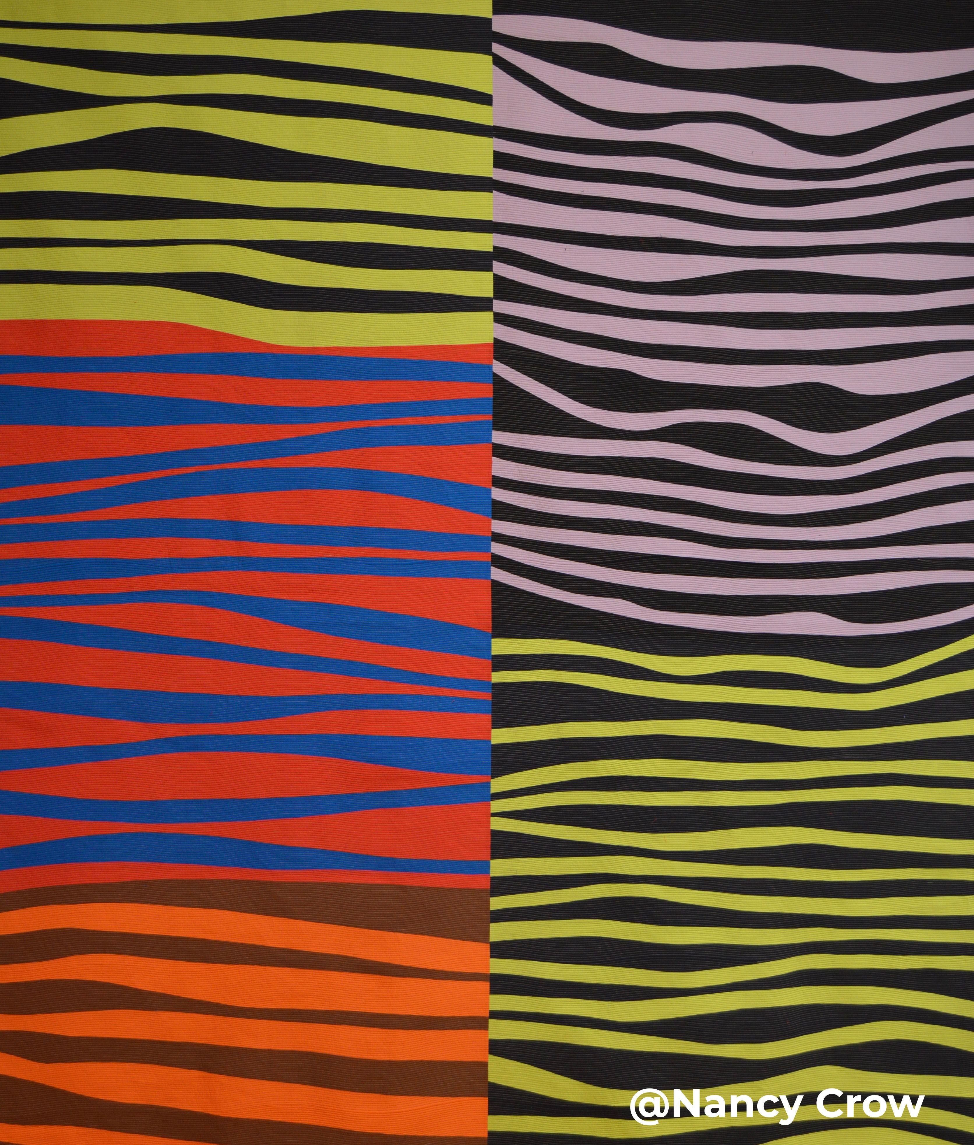 - STRIP-PIECING: In Part I, students will be given Design Exercises that outline how to create specific fabric vocabularies known as strip-pieced fabrics. In creating these brand new specific fabric vocabularies, students will develop the muscle memory needed to cut free-hand a large variety of widths of colors quickly and fluidly. In addition, they will also become more efficient machine-piecers. The resulting strip-pieced fabrics will be used in exploring rudimentary figure/ground composition as outlined next.