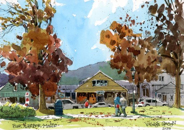 Mount Desert Island is beautiful in all seasons, but at its most spectacular in autumn. In this workshop we’ll hop around the island to find the most sketchable spots — scenic villages and secluded harbors, with their fishing boats at anchor and maritime gardens, as well as rugged coastal scenes animated with jagged rocks and crashing waves. There’s no shortage of scenes to capture in our sketchbooks. If you love plein air sketching in watercolor, this workshop is for you. Join me as we explore the ever-shifting autumn vistas of the town of Bar Harbor and scenic Mount Desert Island. We’ll begin each day with a morning demo, during which I’ll cover the essentials of successful sketching: