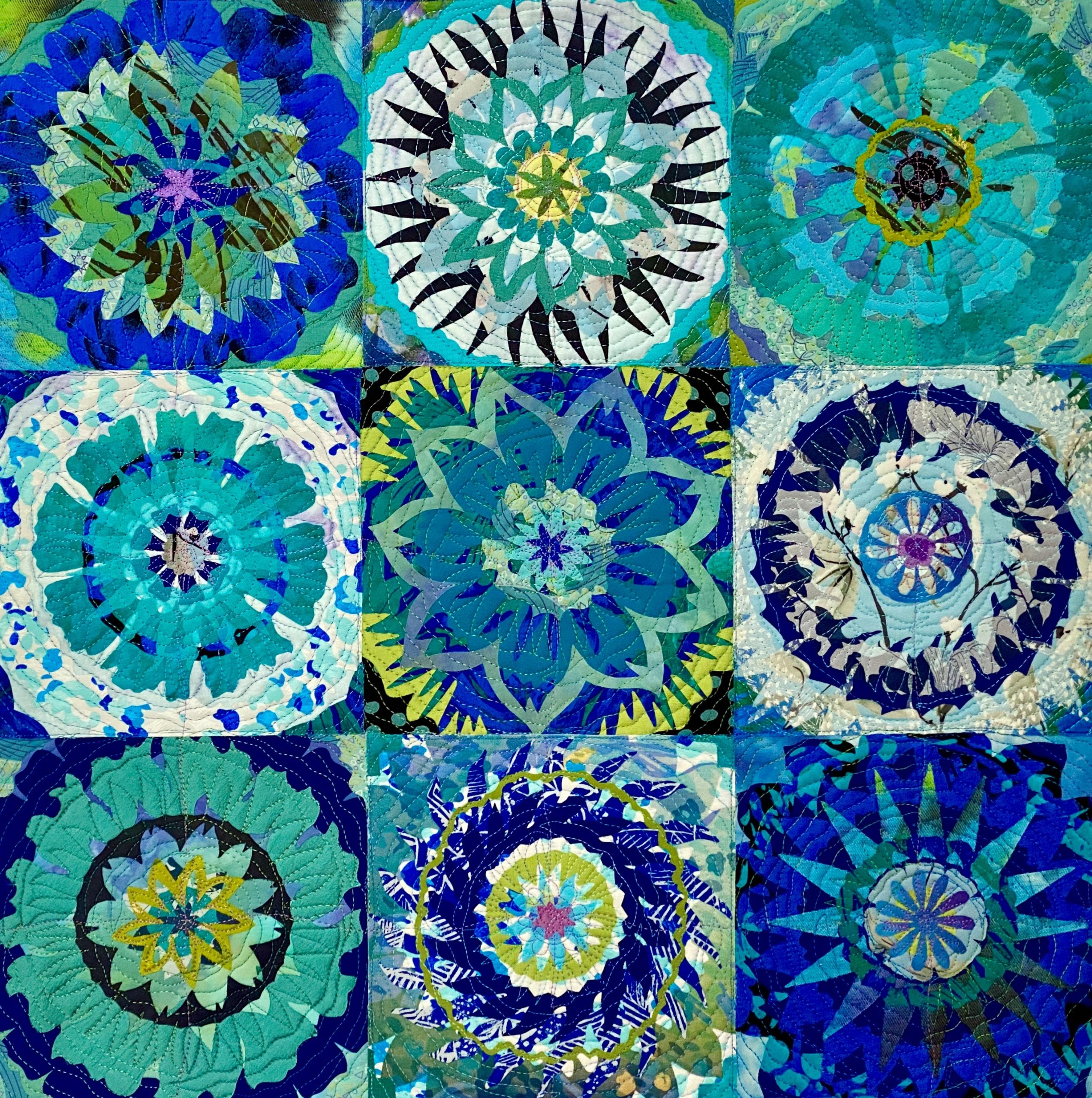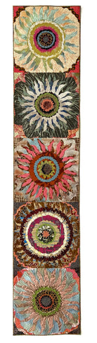 Making beautiful flowers, intricate concentric patterns, block design, and experimenting with unusual fabrics are all included in this class. Learn Sue’s layered construction technique for cutting, assembling, and arranging flowers as she has done in her extensive Flower and Sunflower Series quilts.