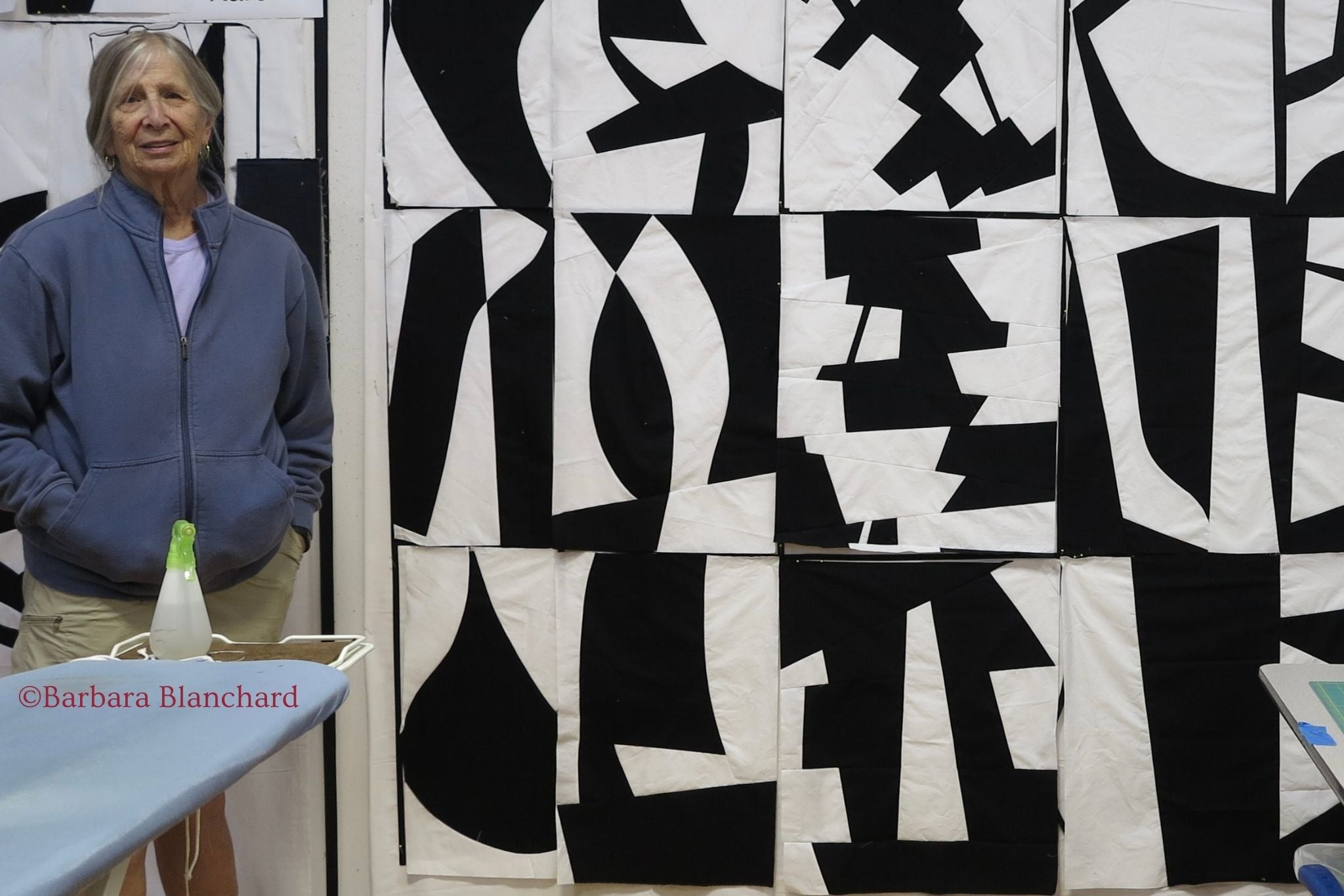 This workshop begins with an intense study in the “creation of line(s) and their spatial relationships” when grouped together with other line(s). All lines will be cut freehand while sharpening one’s eye to stronger proportions. These initial exercises will be done in solid black and solid white. Many small sewn-together compositions will be created. It is hoped that participants will begin to see line as a very important element in quilt-making.