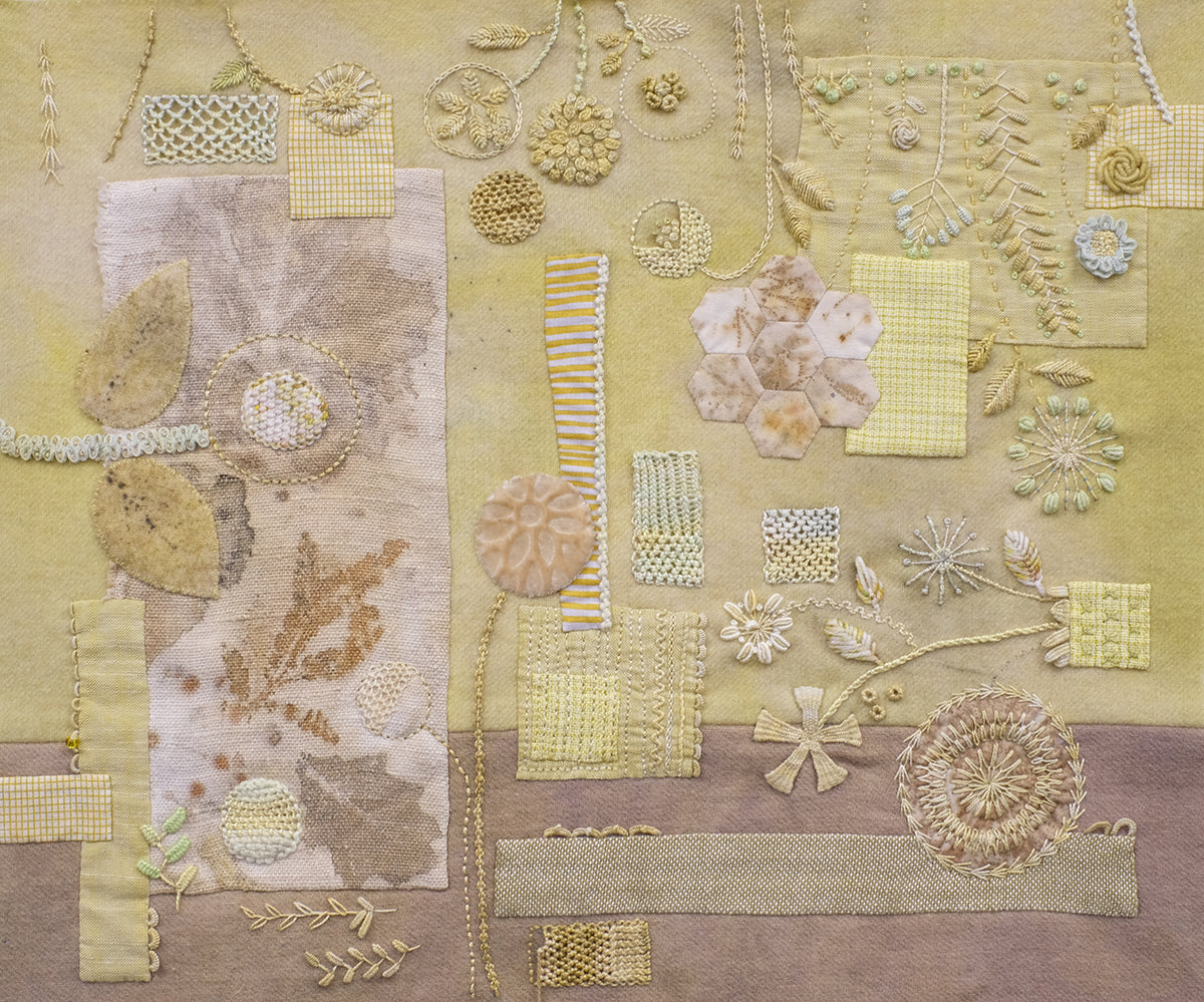 Learn how stitches can be altered by means of changing stitch lengths, combining stitches, using different thread types and thread weights all to add texture and depth to your pieces.Focusing on the stitches, you will begin with a tonal layered wool and cotton background- perhaps in a pastel palette or in eco-prints.