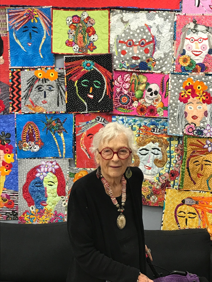 Freddy has been producing her ground-breaking colorful quilts for more than 3 decades. Freddy still travels and teaches, challenging quilters to break the rules and do what works best for them. **“Red is a neutral”** is her quilting mantra.