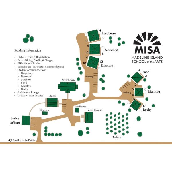The Madeline Island School of the Arts (MISA) is just 1.5 miles from the La Pointe ferry dock, surrounded by the island’s serene landscapes and endless sources of inspiration.