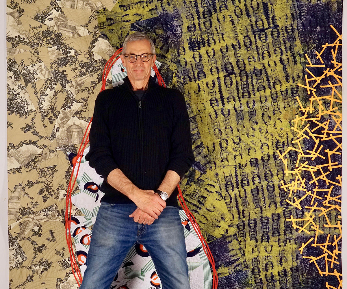 Joe Cunningham has been a professional quilt artist since 1979. He has written essays on the subject for museum catalogues, books and magazines. His book, “Men and the Art of Quiltmaking” was the first book on its subject. In 2004 he received a $30,000 Shulte Grant from the Fort Mason Foundation. In 2009 he received a grant to study with the Gees Bend quilters in Alabama. In 2010 he was artist in residence at the De Young Museum in San Francisco, which purchased one of his quilts for its permanent collection. Joe travels throughout the country and internationally to give lectures and workshops on quiltmaking. His ten books on quiltmaking include the first biography of a living quilter, the first book on men who make quilts (“Men and the Art of Quiltmaking,”) and a definitive book on marking quilts for quilting called “Quilting with Style”, co-authored with Gwen Marston, and published by AQS. He has been seen on the Peabody Award-winning PBS series Craft in America, the HGTV series “Simply Quilts with Alex Anderson,” as well as “The Quilt Show” with Ricky Tims and Alex Anderson, and others. Cunningham has performed his musical quilt show, “Joe the Quilter,” for guilds and theaters nationwide. His latest book is “Man Made Quilts: Civil War to the Present,” a catalogue for the show of the same name at the Shelburne Museum.